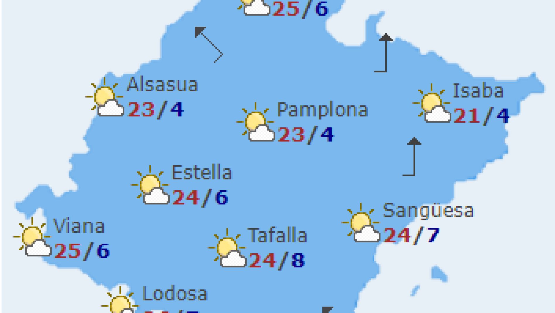 | Pamplona, Navarra, España | 7.6 °C | 0.4 mm | 8 °C, 4 °C |